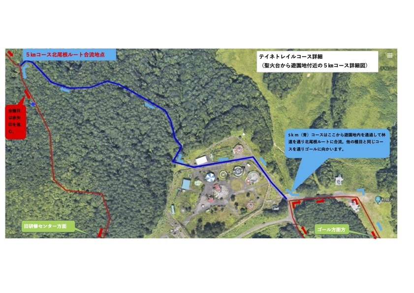 大会当日に限りご厚意でコースとして使用させていただいていますので、試走の際には登山道以外は無断で立ち入らないようにして下さい。
